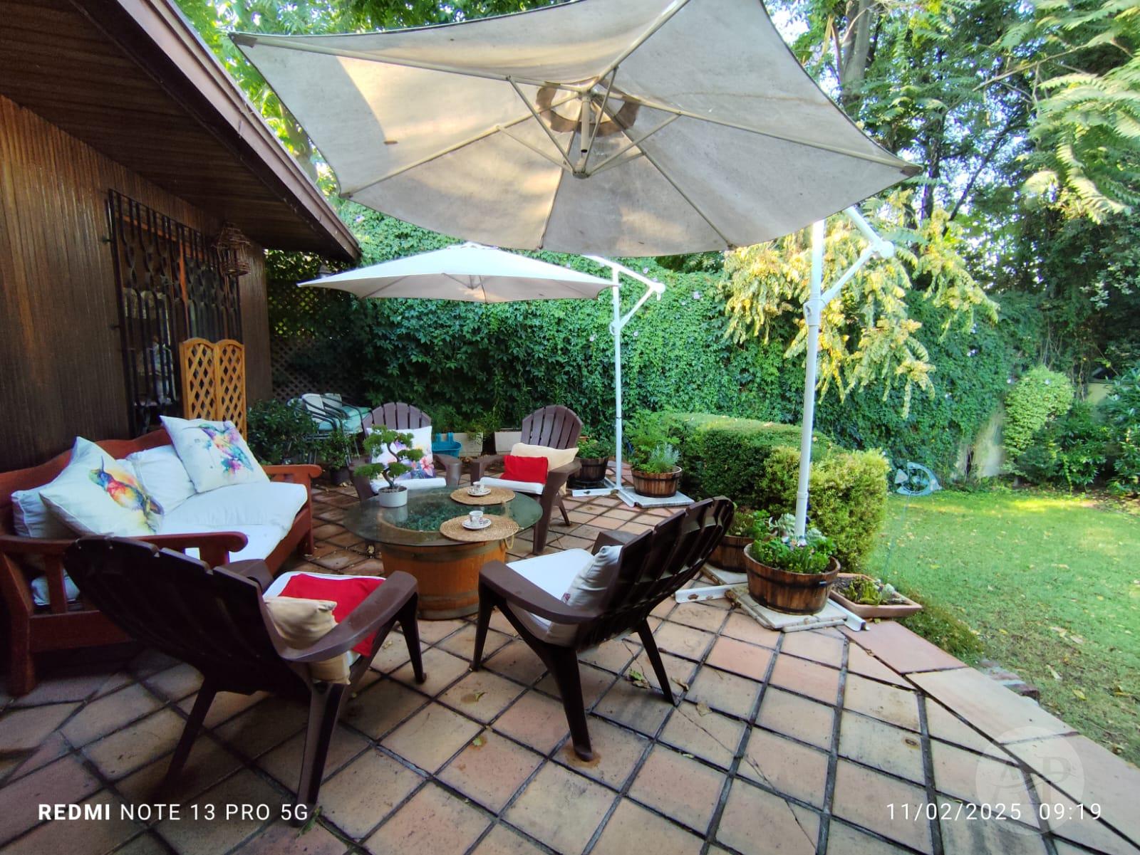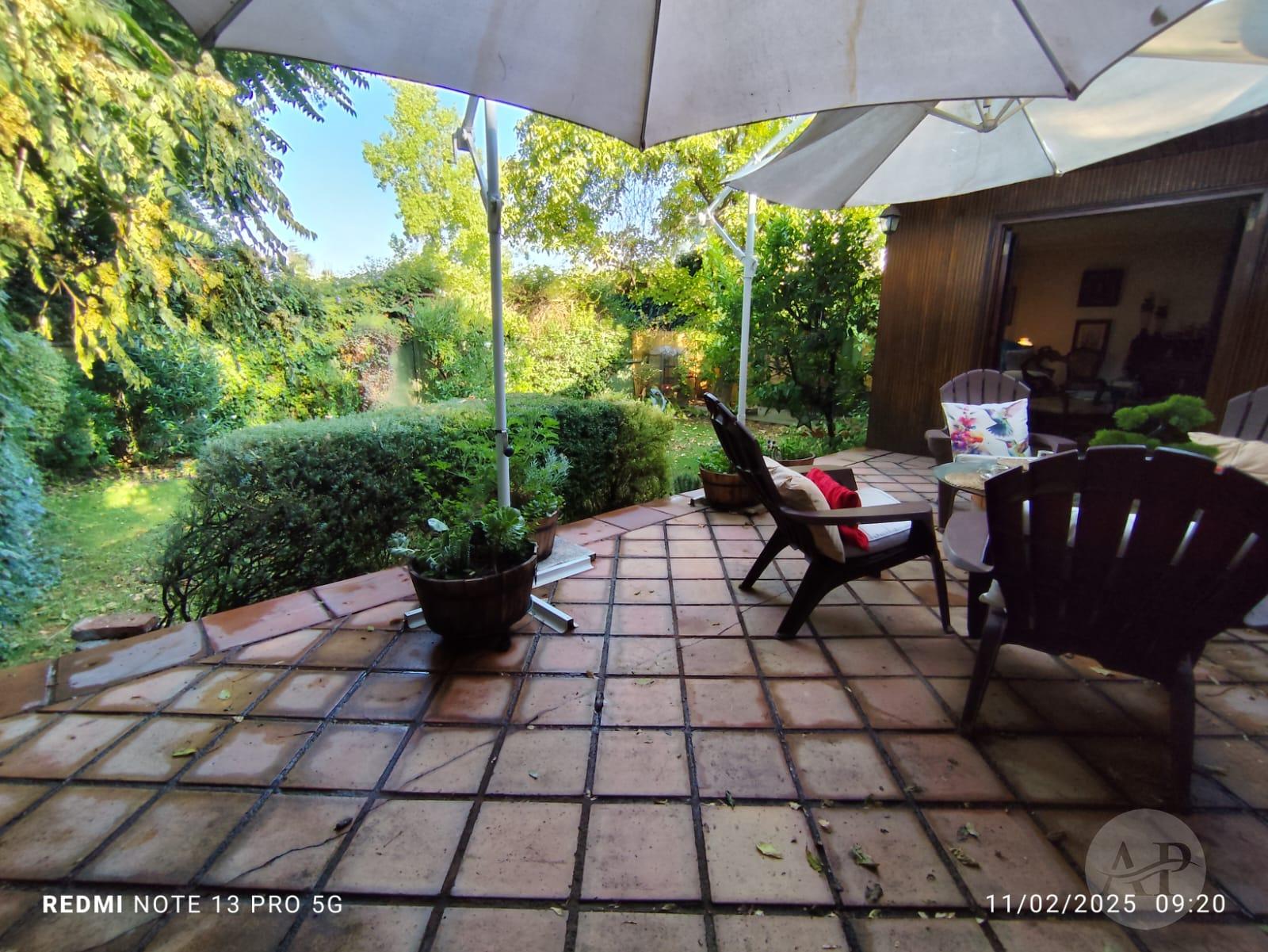 * Desde el living se accede a la terraza de ladrillo, con escalinatas al jardín, amplio y frondosos árboles. En otro costado, hay otra terraza, donde se puede poner la parrilla o hacer un quincho